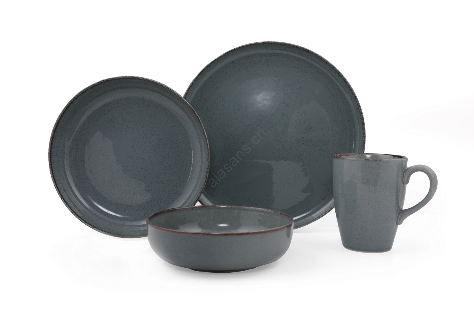 16-teiliges Geschirrset, grau/Porzellan
