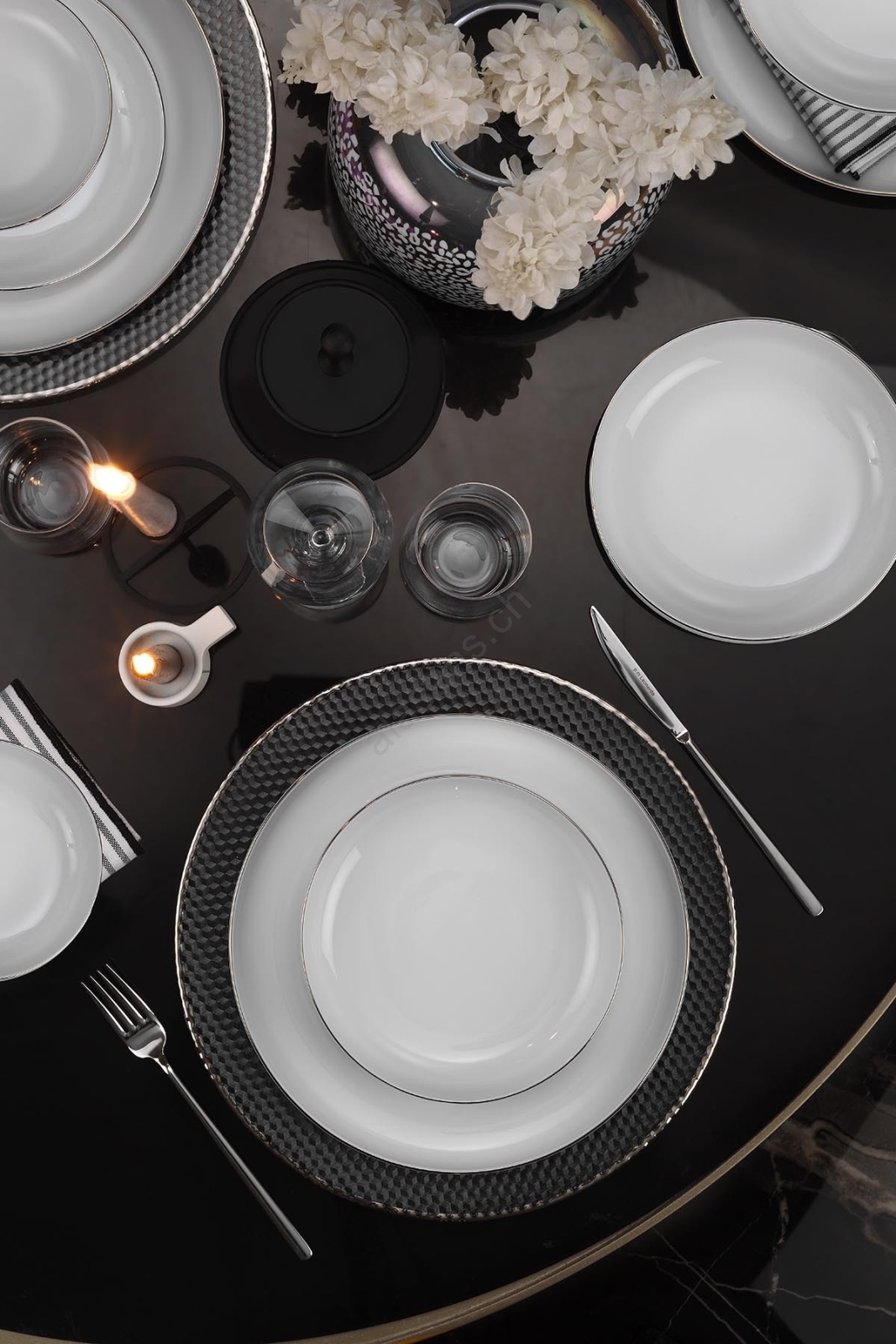 18-teiliges Tafelservice, weiß/silber, Porzellan