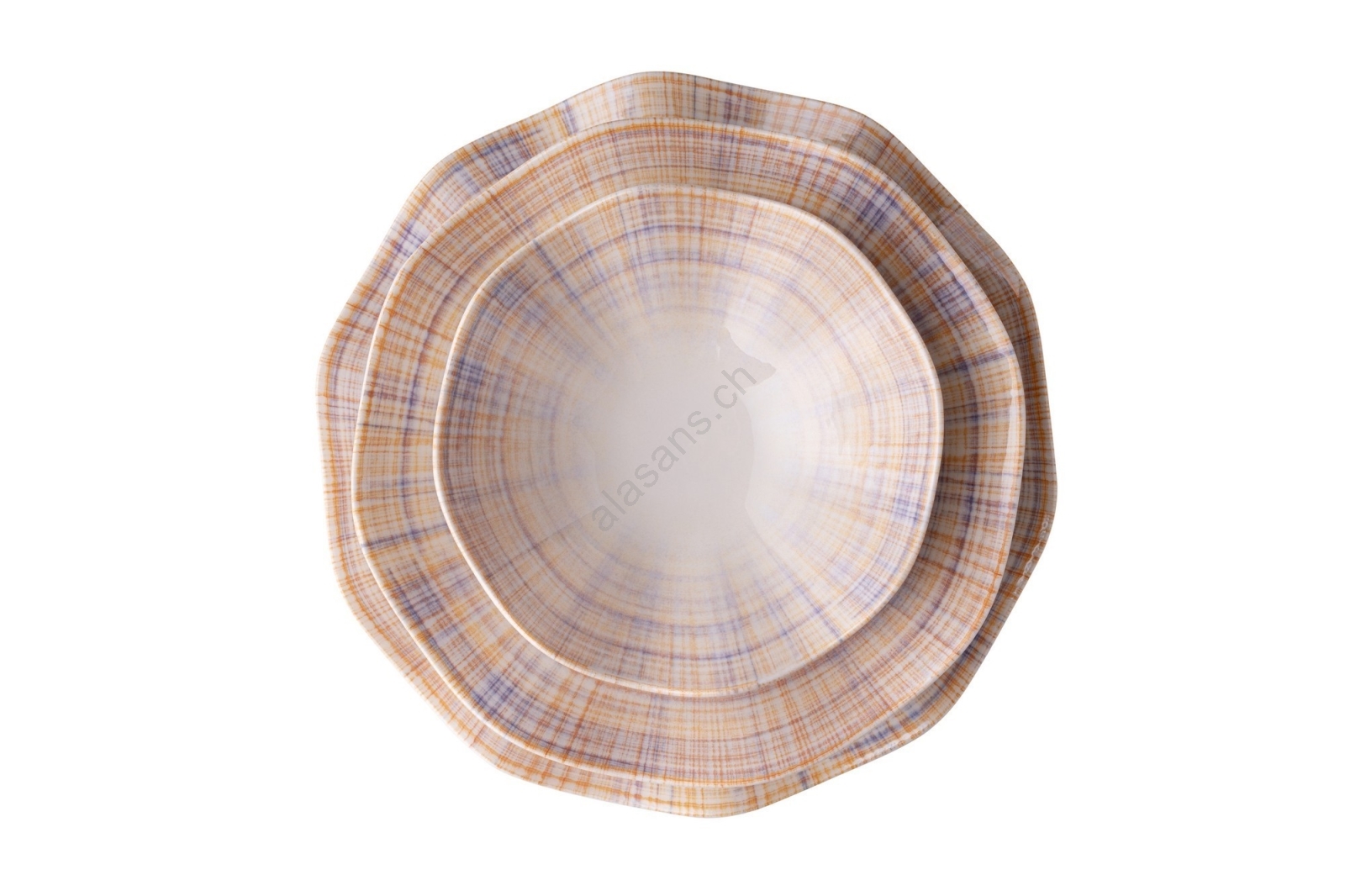 Elegantes 24-teiliges Geschirrset aus Porzellan, Orange/Blau
