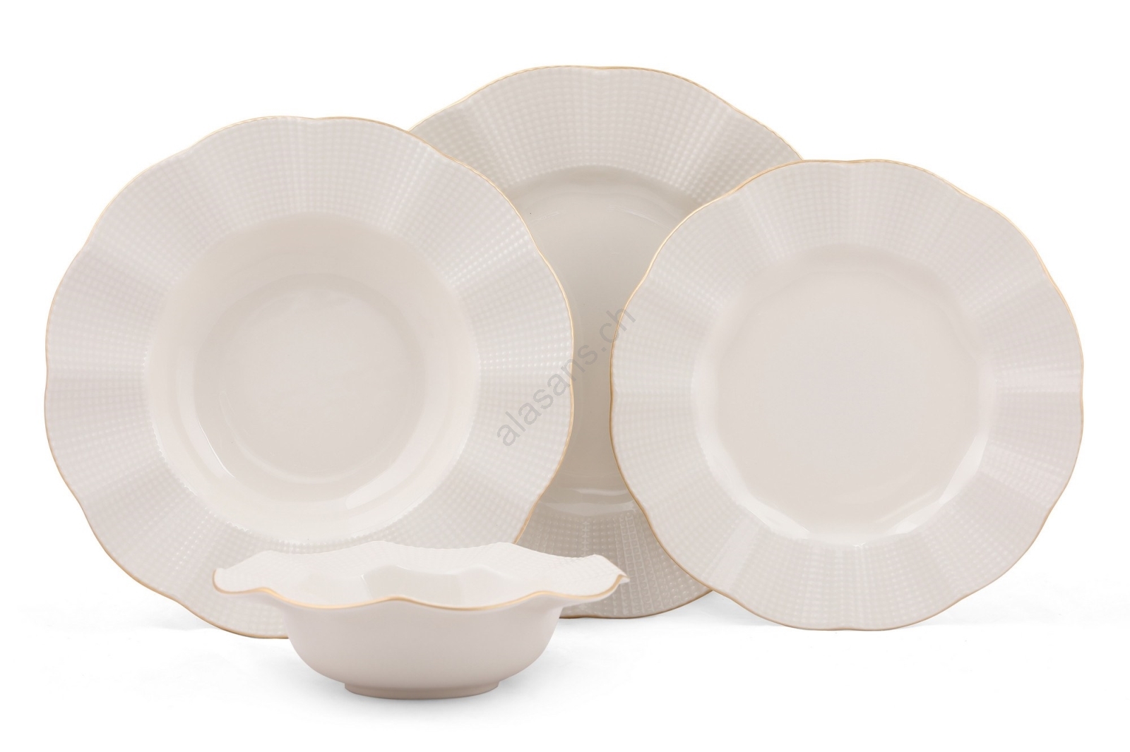 24‑teiliges Porzellan‑Essservice, weiß mit goldener Verzierung