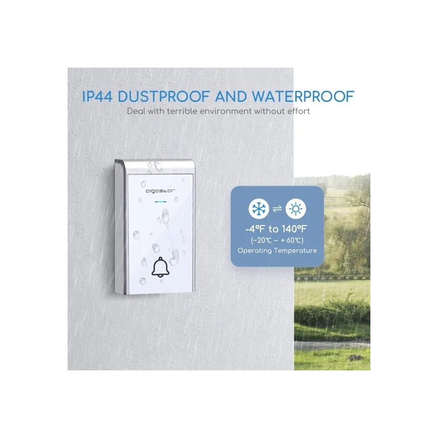 Aigostar - Kabellose Türklingel 3xAA/12V IP44 Weiß/Silber