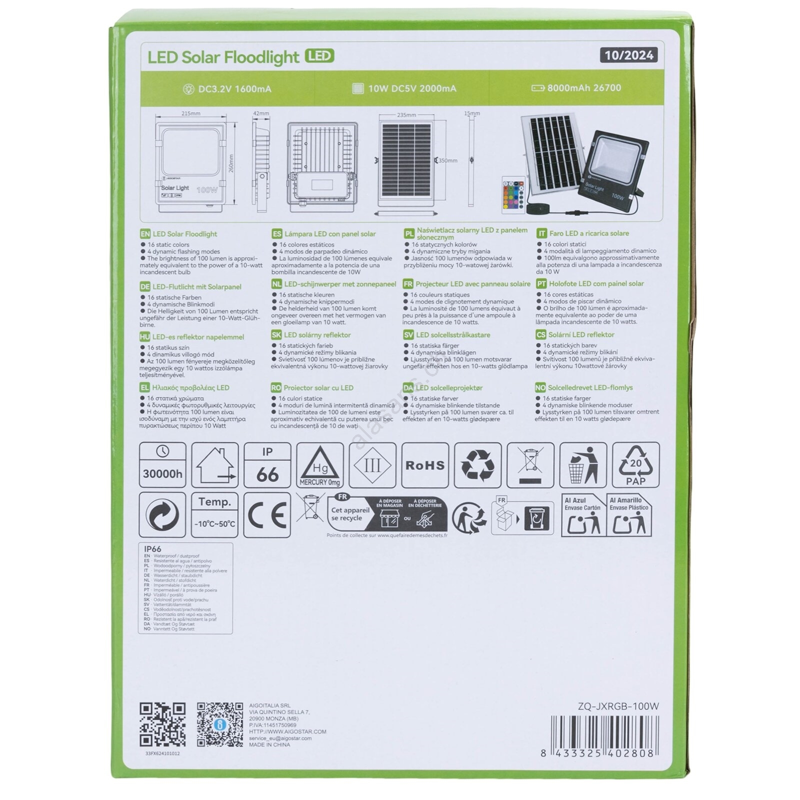 Aigostar - LED RGB dimmbarer Solarstrahler LED/100W/3,2V IP66 + Fernbedienung