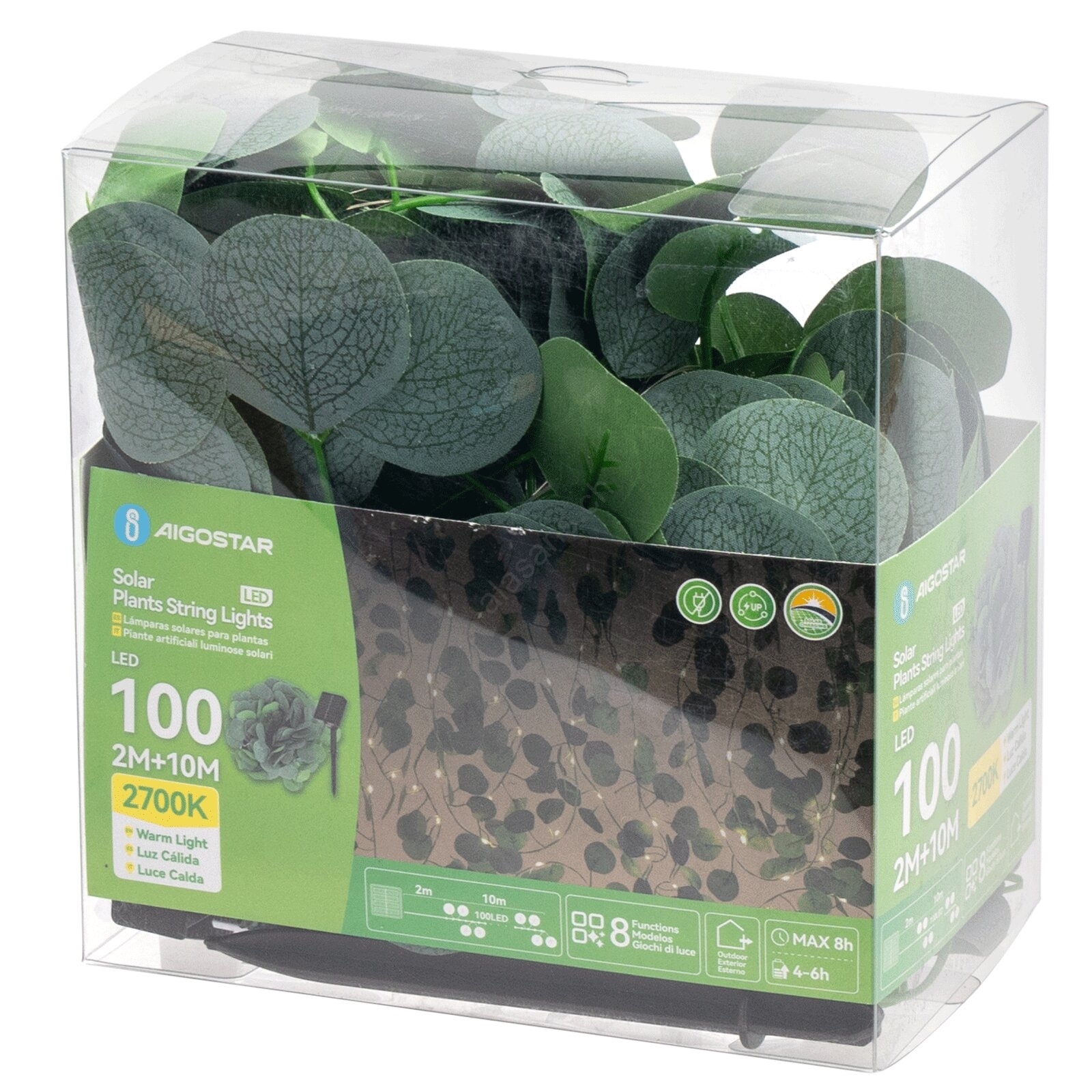 Aigostar - LED Solar-Lichterkette 100xLED/12m IP65 300 mAh warmweiß Eukalyptus