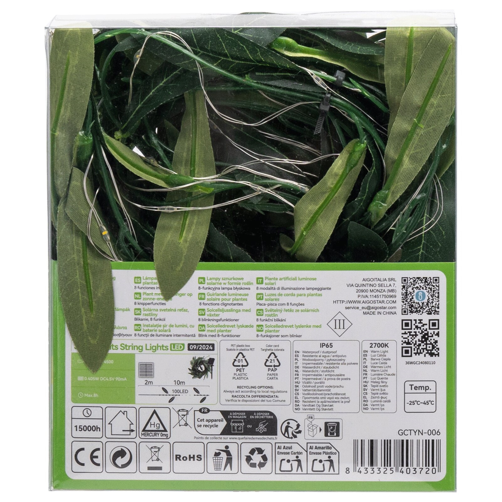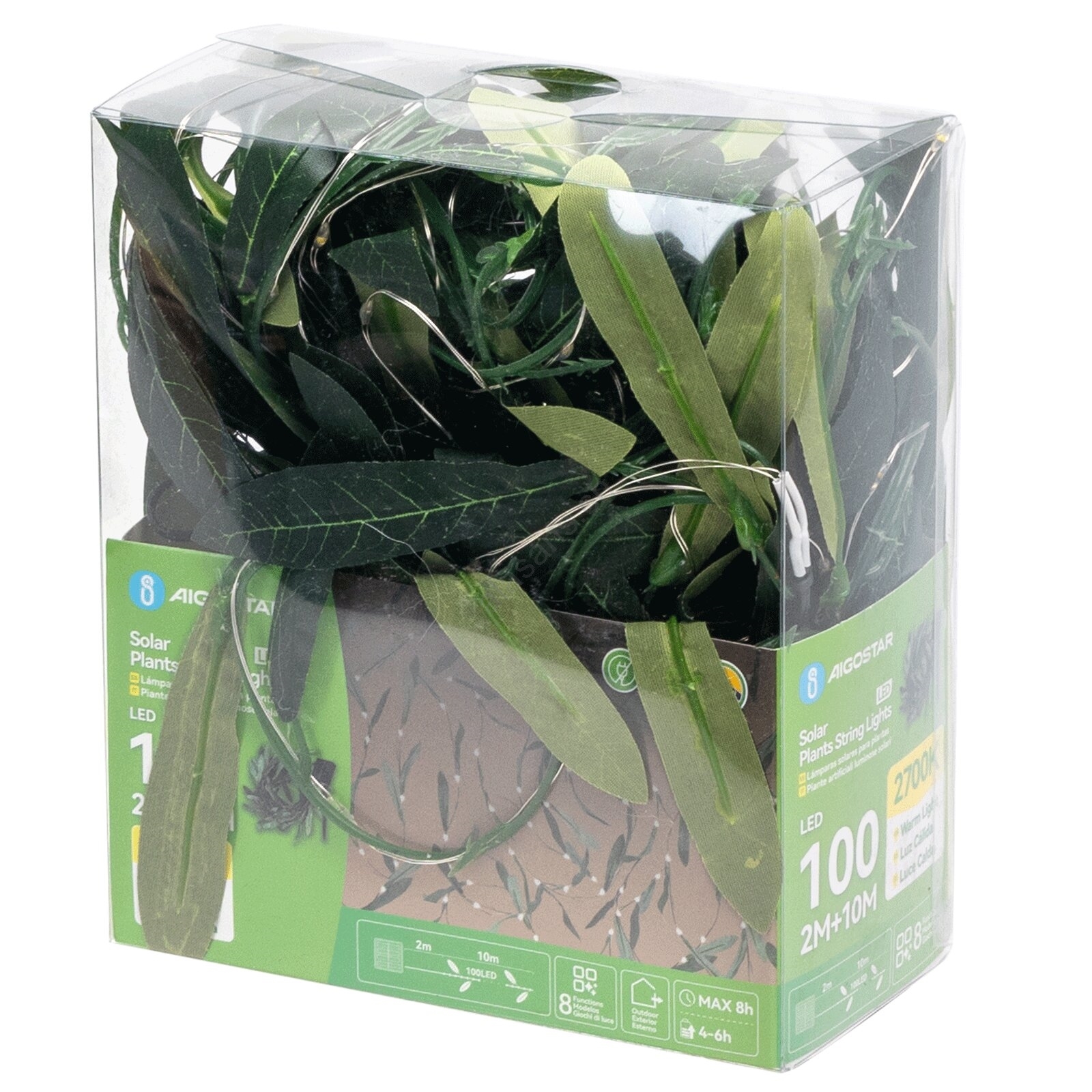 Aigostar - LED Solar-Lichterkette 100xLED/12m IP65 300 mAh warmweiß Olive