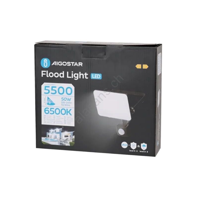 • Aigostar - LED-Strahler mit Sensor LED/50W/230V 6500K IP65 schwarz