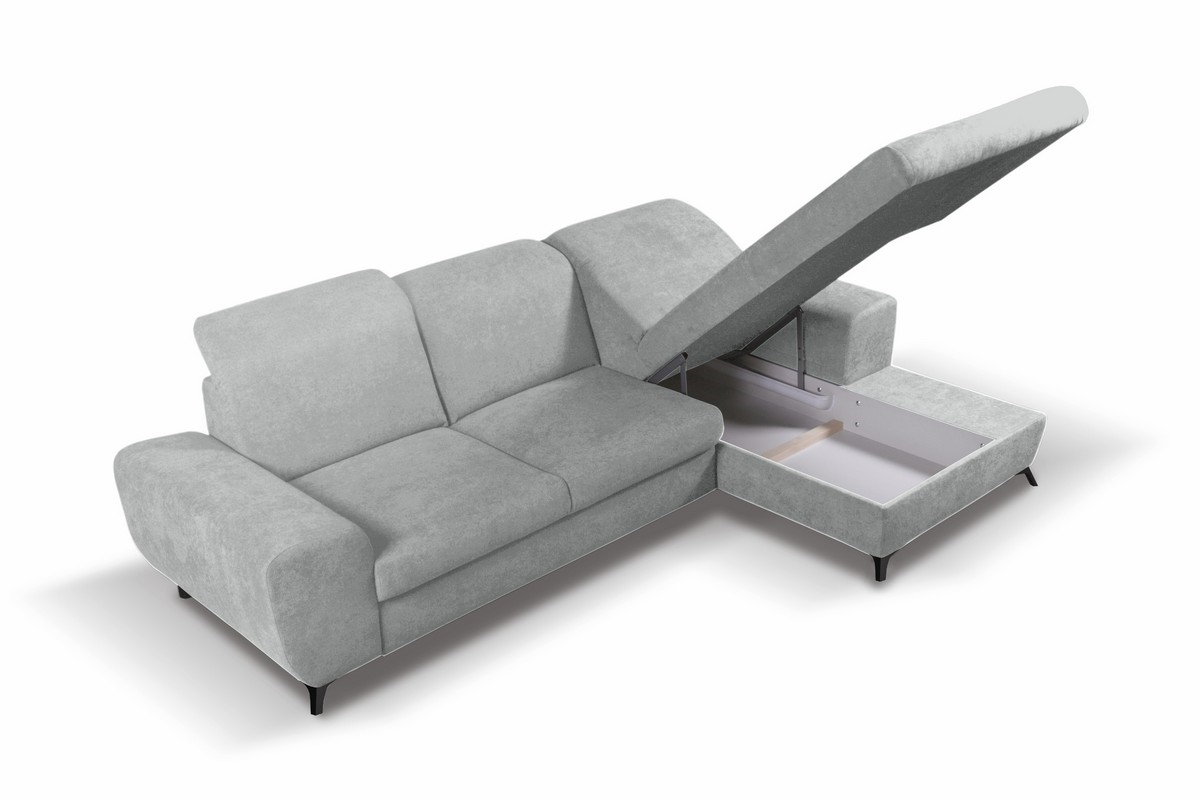 Ausklappbares, gepolstertes Ecksofa ALTA, L‑Form, rechts, mit Stauraum, grau
