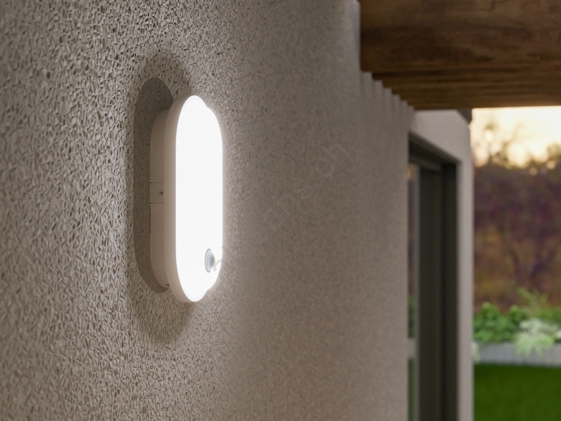 LED-Außenwandleuchte mit Bewegungs- und Dämmerungssensor OVAL LED/10W/230V IP65 weiß