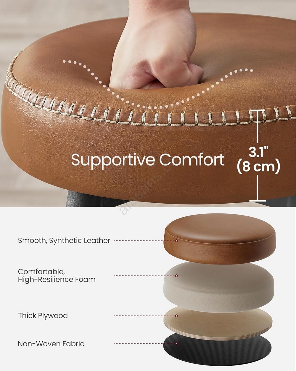 • Die Sitzfläche verfügt über einen glatten Bezug und ist mit 8 cm starkem, hochbeständigem Schaumstoff gepolstert.
