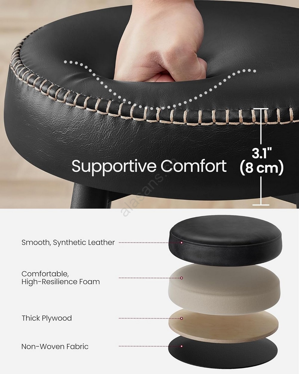 • Der wasserabweisende Bezug aus Kunstleder lässt sich leicht reinigen und die matten Stahlbeine sind kratzfest.