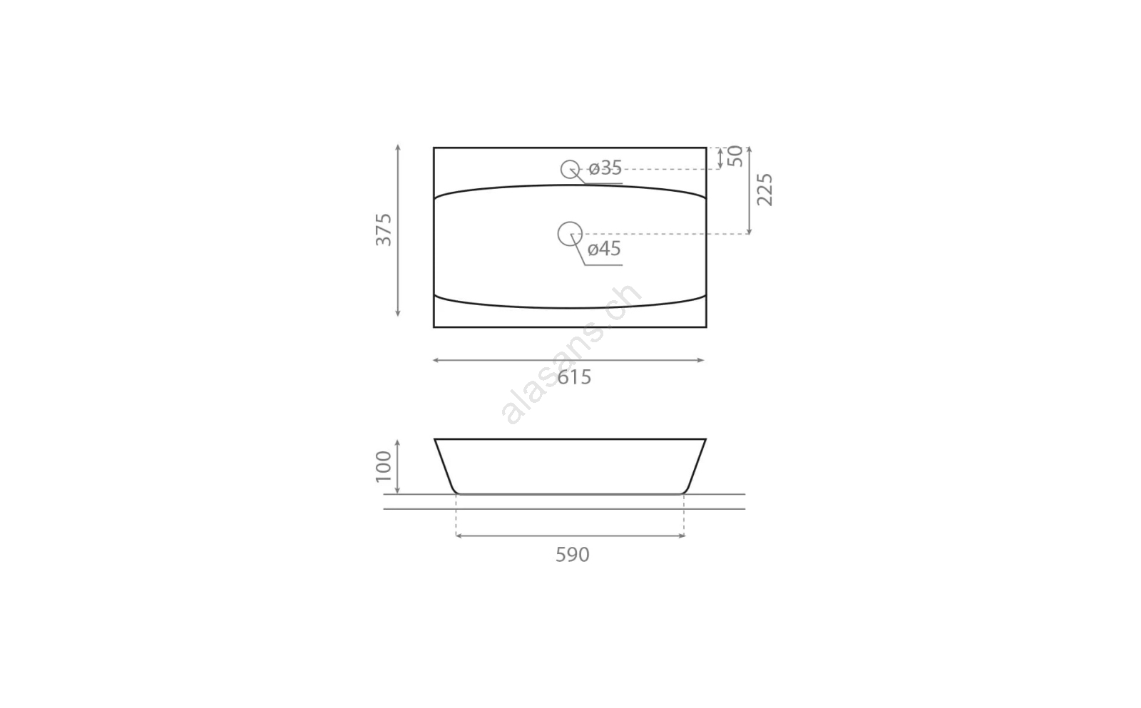 • Modernes und elegantes Waschbecken ohne Überlauf.