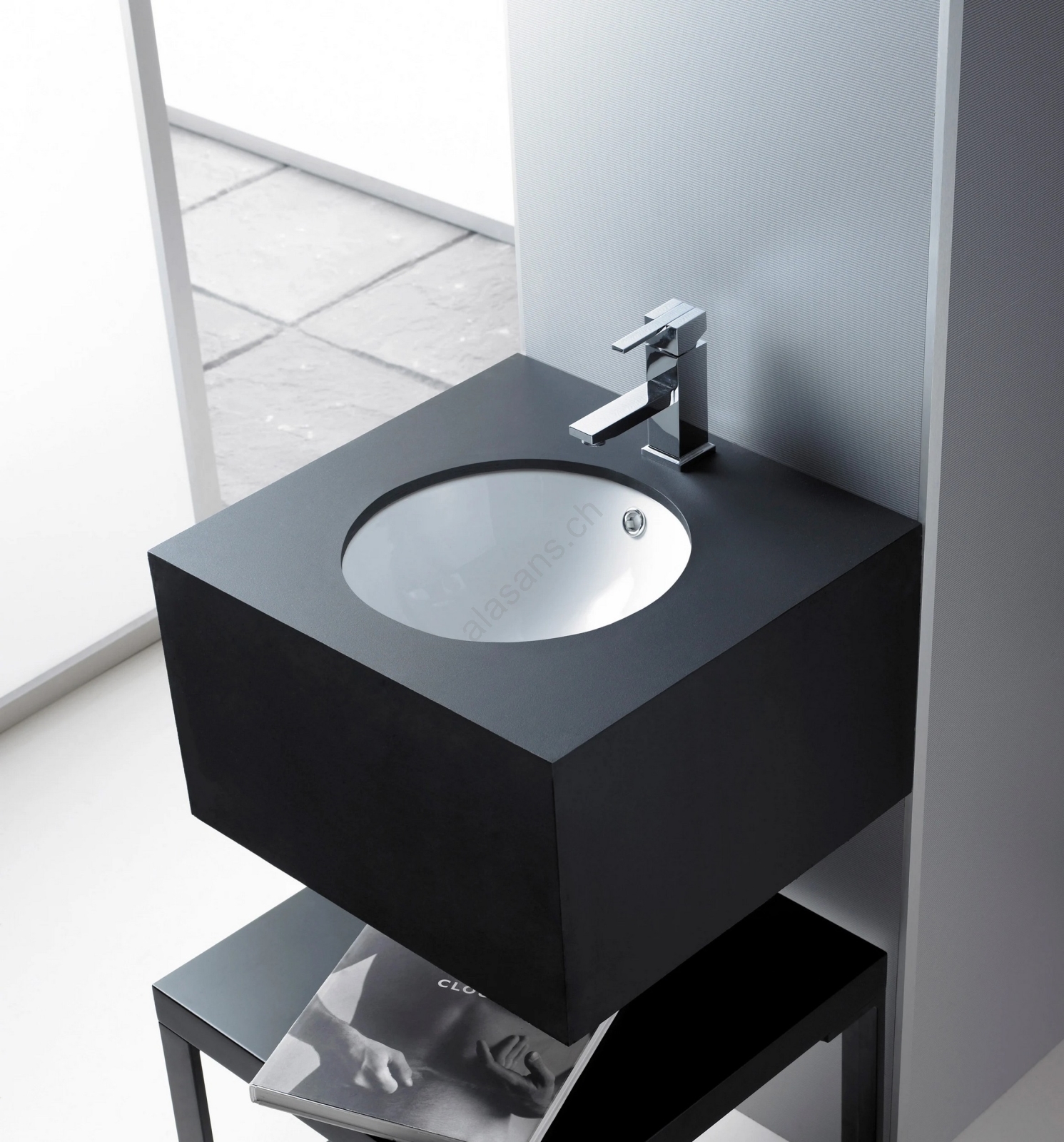 • Modernes und elegantes Waschbecken mit Überlauf.