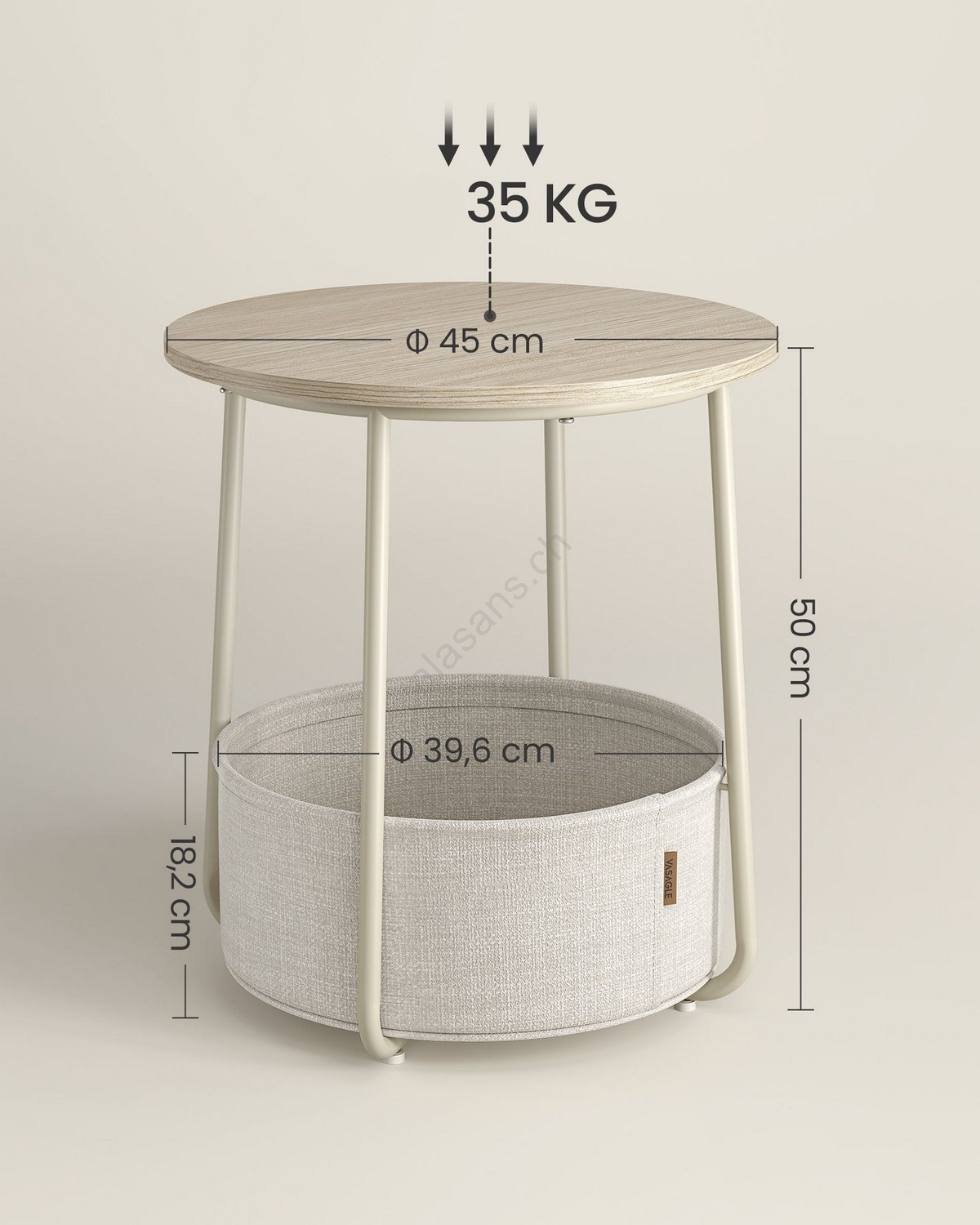 • Er verfügt über einen Stoffkorb im unteren Bereich mit einer Höhe von 18,2 cm und einem Durchmesser von 39,6 cm.
