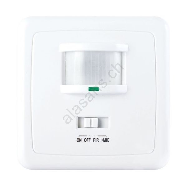 • Infrarot-(PIR-)Bewegungs- und Schallsensor aus weißem Kunststoff.