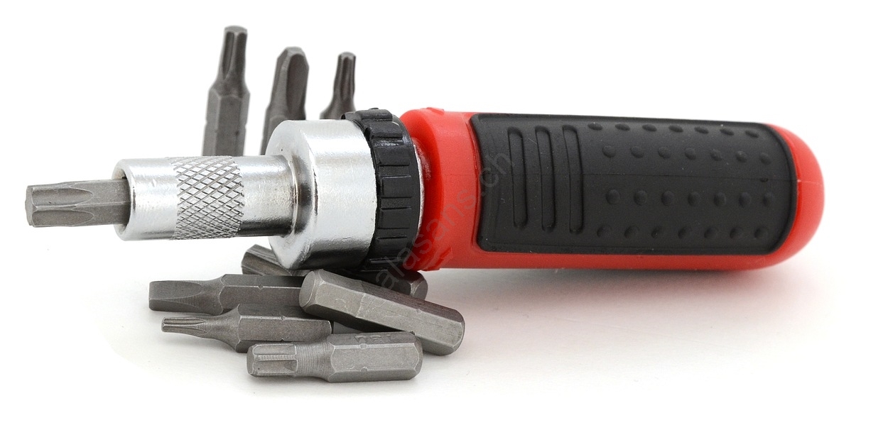 • Set mit einem Ratschenschraubendreher und verschiedenen Bits.