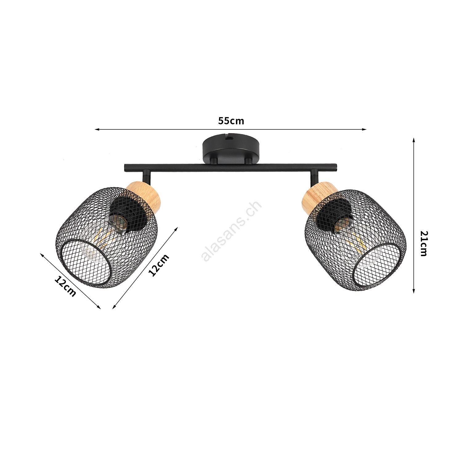 Brilagi - Deckenstrahler BASKLITE 2xE27/15W/230V Gummibaumholz/schwarz