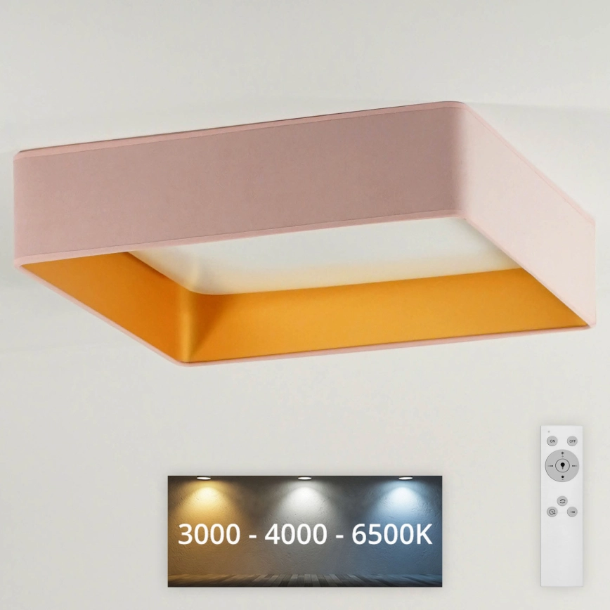 Brilagi - dimmbare LED-Deckenleuchte VELVET SQUARE LED/24W/230V 43x43 cm 3000/4000/6500K + Fernbedienung rosa