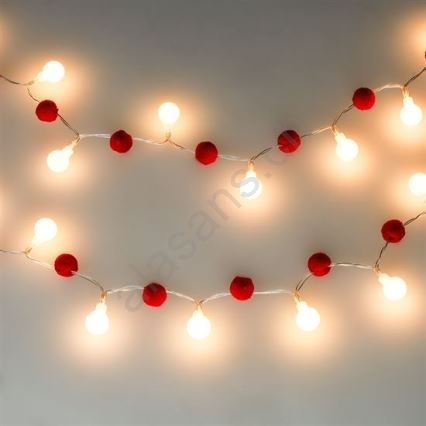 • LED-Weihnachts-Lichterkette mit roten Kugeln und LEDs.
