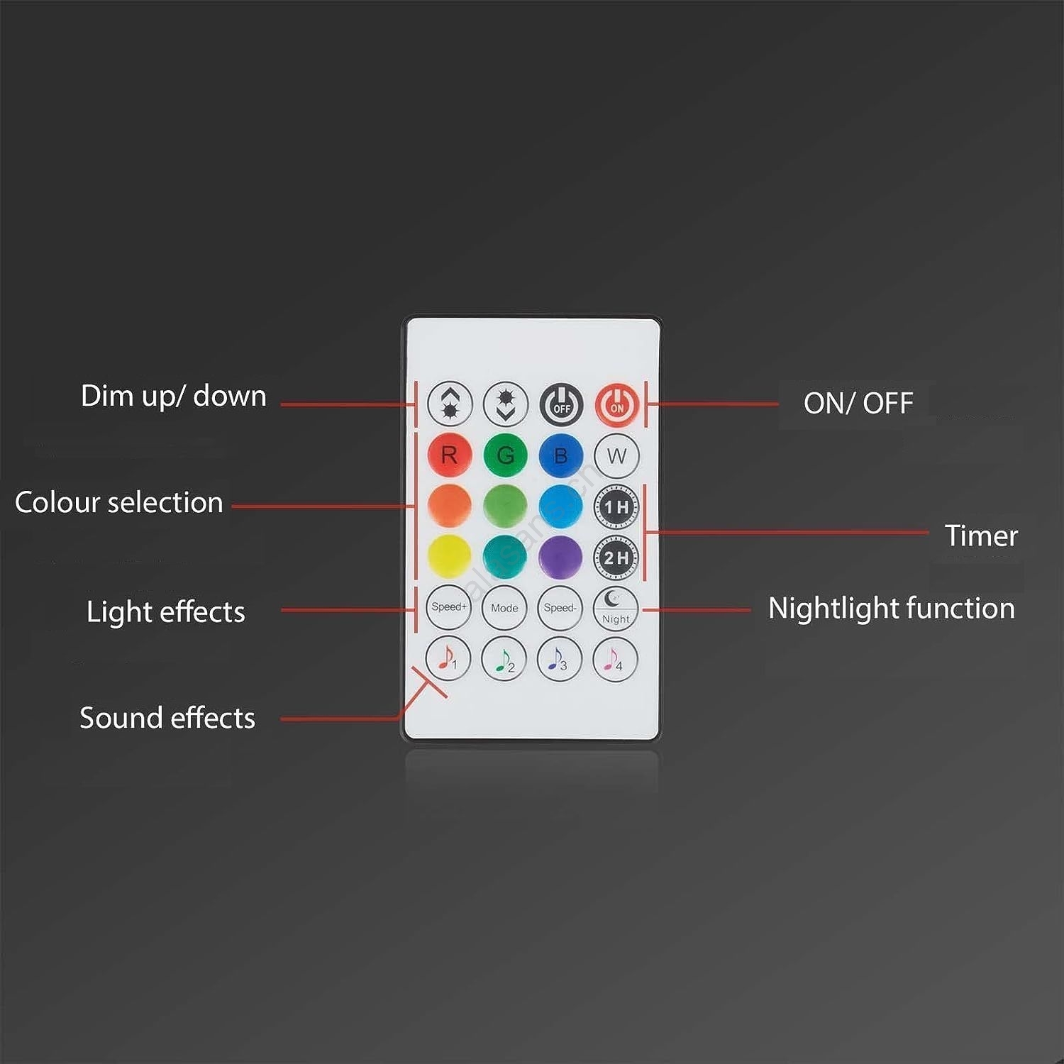 • Integrierter Musiksensor, der die Farben intelligent im Rhythmus der Musik wechselt.