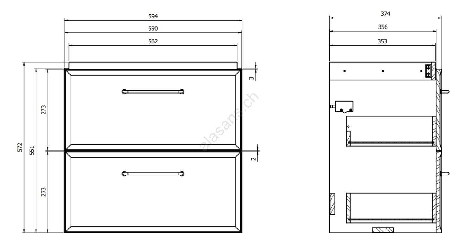 • Der Schrank verfügt über zwei geräumige Schubladen mit Dämpfung beim Schließen - Soft-Close.