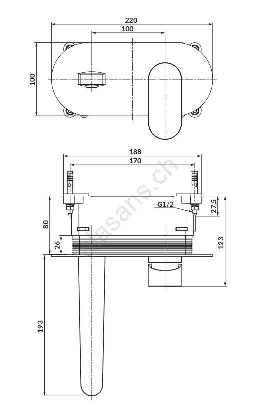 • Einhebel-Wannenarmatur für Unterputzmontage.