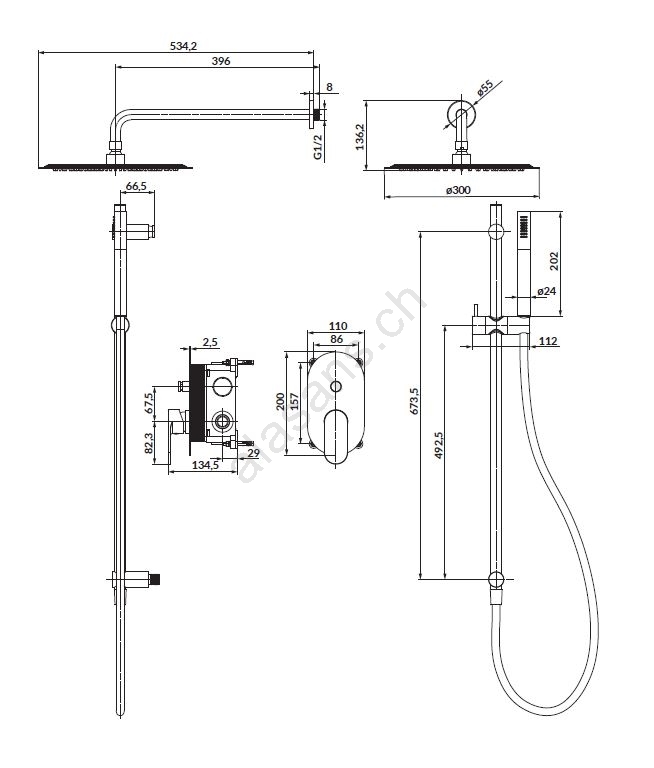 • Edelstahl-Duschkopf SLIM (0,2 cm) mit Regenduschfunktion und einem Durchmesser von 25 cm,