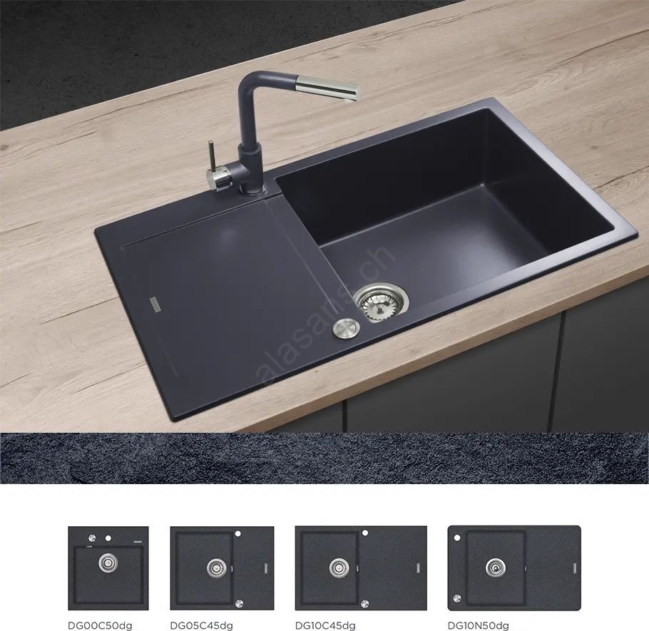 • Die Oberfläche der Armatur ist mit einer hochwertigen, granitoptisch gestalteten Beschichtung versehen.