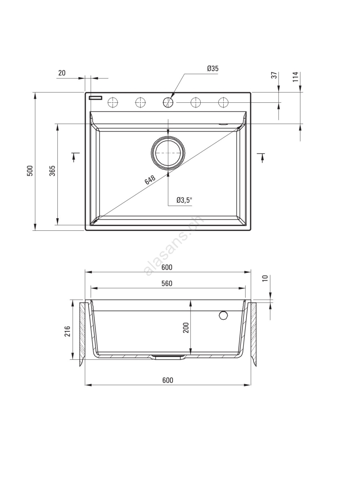 • Er ist mit Armaturen mit Anschluss an die Geschirrspülmaschine ausgestattet.