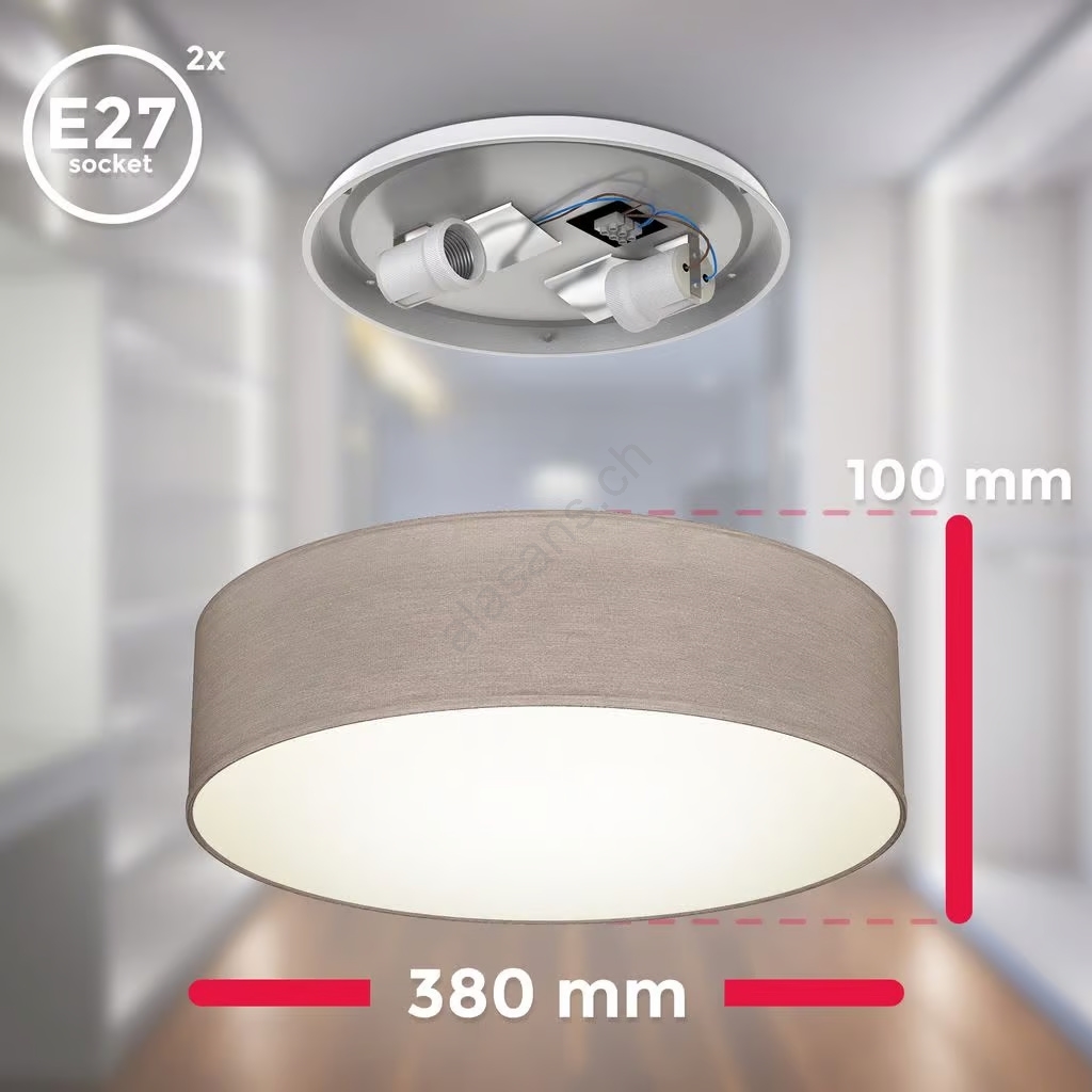 • Deckenleuchte 2xE27/40W/230V, Durchmesser 38 cm, beige