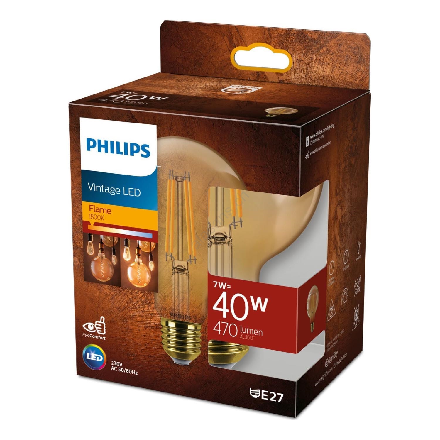 • LED-Lampe VINTAGE Philips G95 E27/7W/230V 1800K