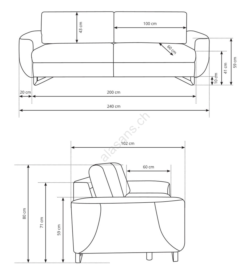 • Die Sitztiefe von 60 cm bietet ausreichend Platz für entspanntes und ergonomisches Sitzen.
