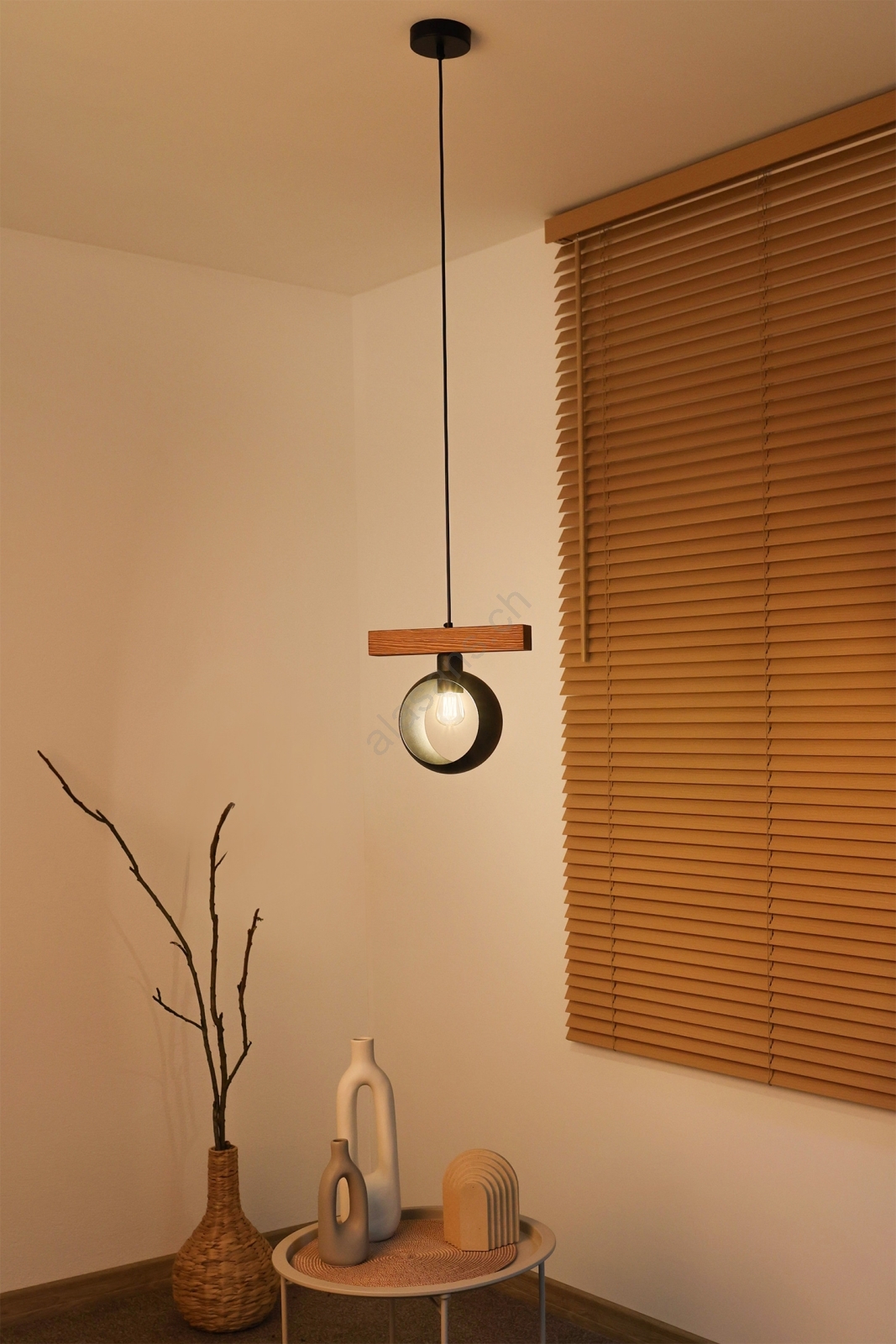 • Duolla - Hängeleuchte mit Kabel IRONLINE 1xE27/15W/230V Kiefer/Eiche/Schwarz