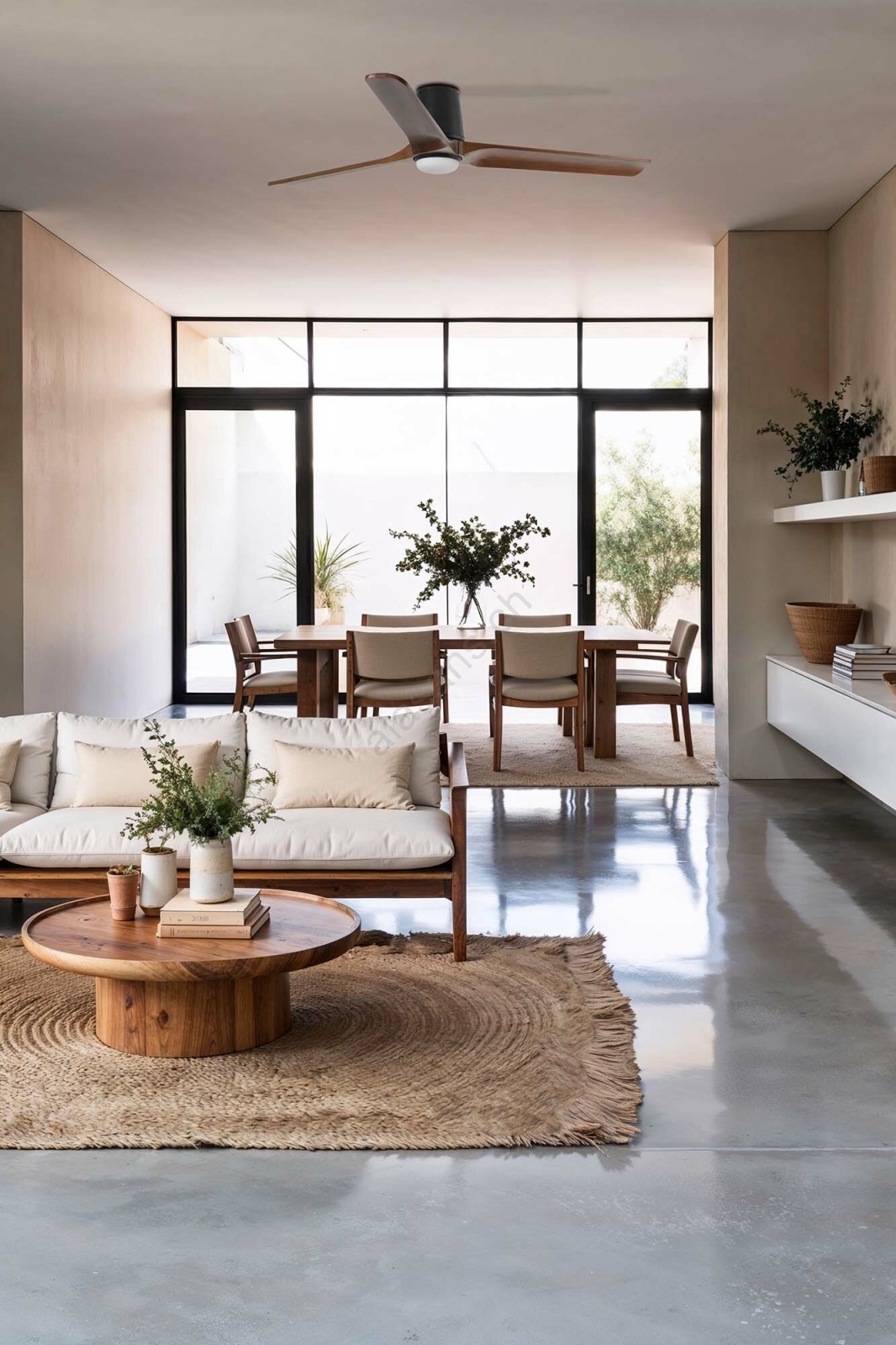 • Moderner Deckenventilator mit Gleichstrommotor.