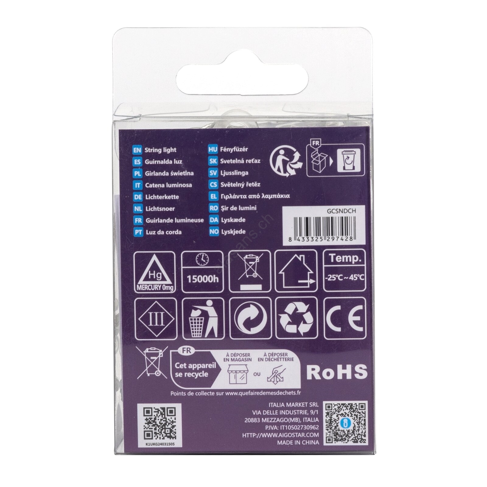 Aigostar -Guirlande de Noël extérieure 50xLED/8 fonctions 3xAA 5,3m IP44 blanc froid