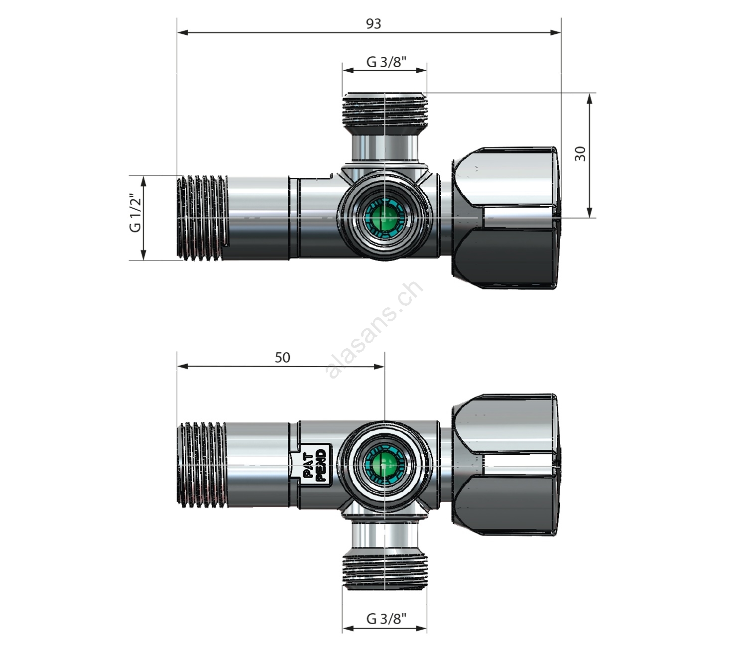 • Le robinet combiné d'angle a-80 offre deux sorties d'eau.
