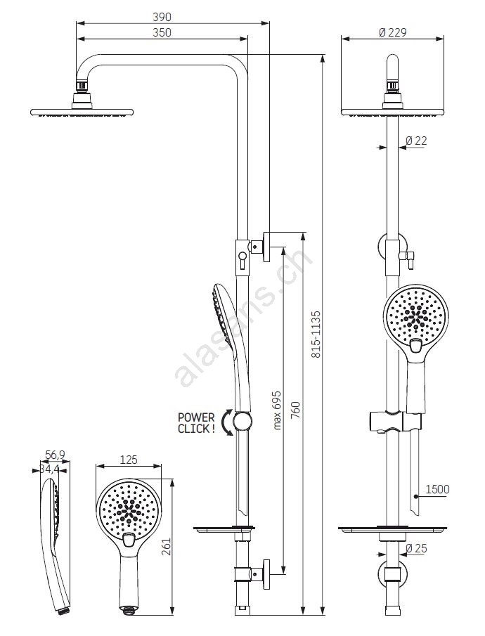 • Ensemble de douche moderne adapté à toutes les salles de bains.