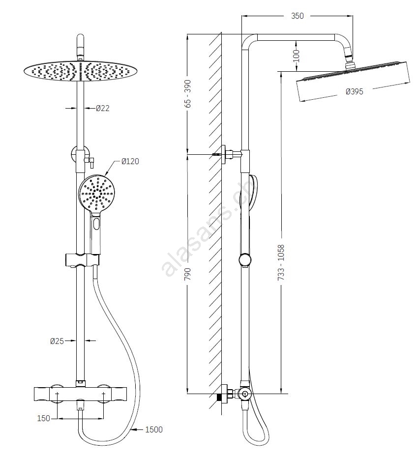 • Le set comprend un mitigeur thermostatique en laiton massif.
