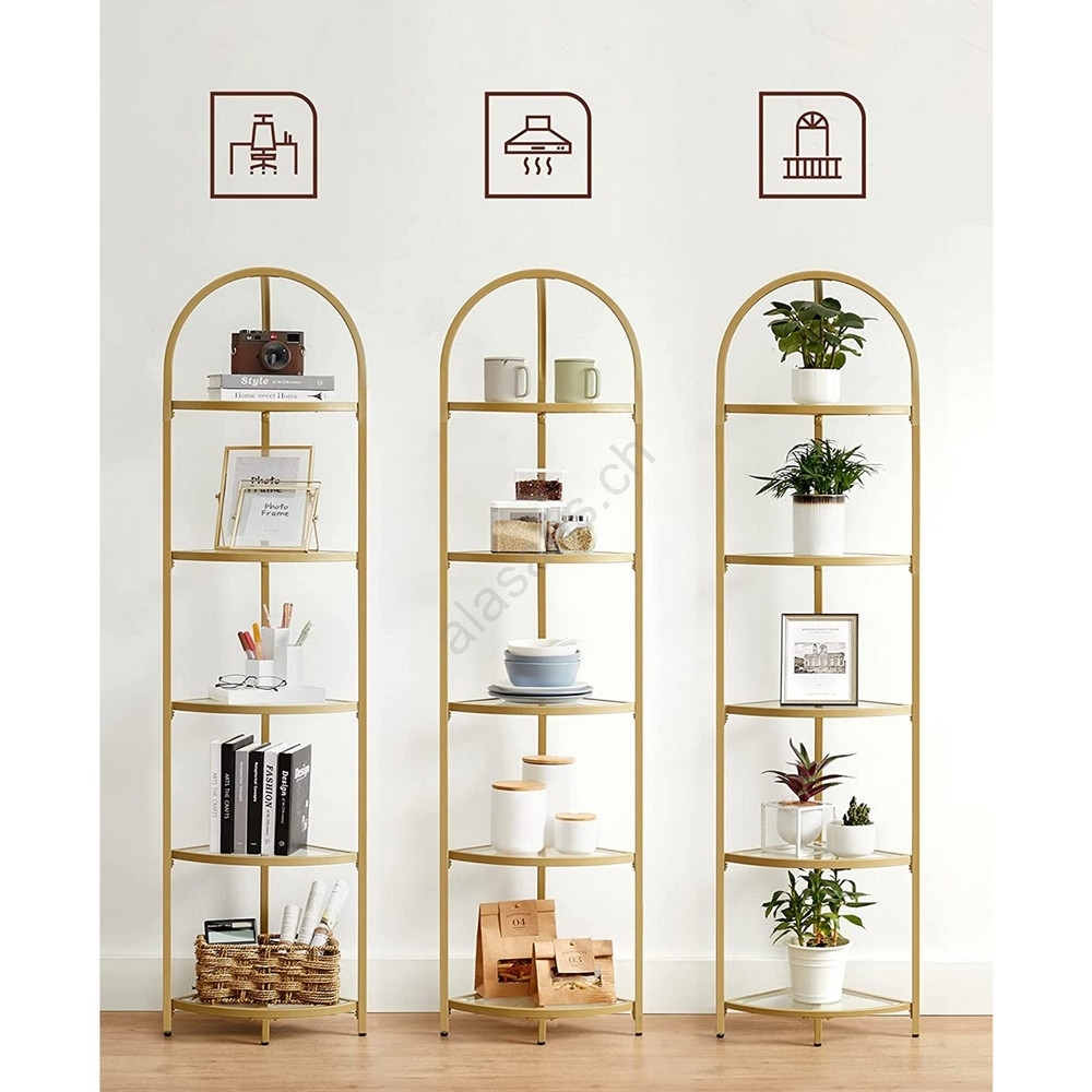 • Grâce à 5 étagères (chacune d'une capacité de charge allant jusqu'à 5 kg) vous pouvez y ranger livres, figurines, décorations et autres objets à exposer.