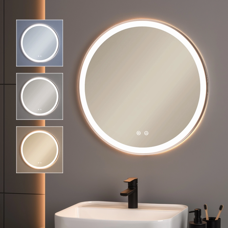 • Brilagi - Miroir chauffant pour salle de bains à LED à intensité variable, rétroéclairé ALU PRO LED/18W/230V Ø 60 cm 3000/4000/6500K IP44 chrome brillant CRI 90