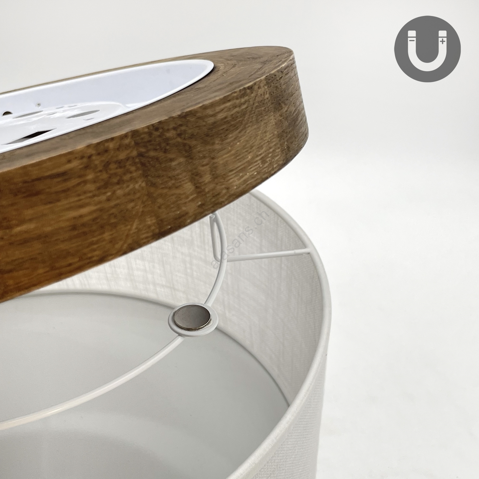 • Grâce aux aimants sur le dessus, l'abat-jour peut être installé facilement et très rapidement.