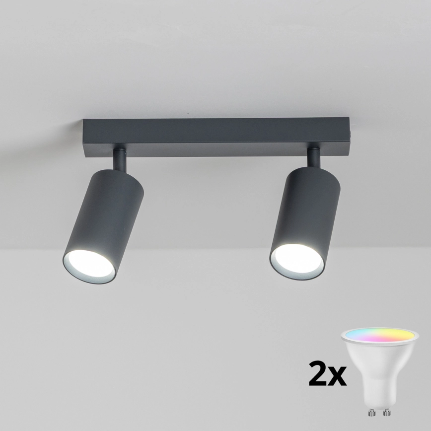 • Brilagi - Spot LED RGBW dimmable SELE MODERN 2xGU10/6W/230V 3000K noir + télécommande