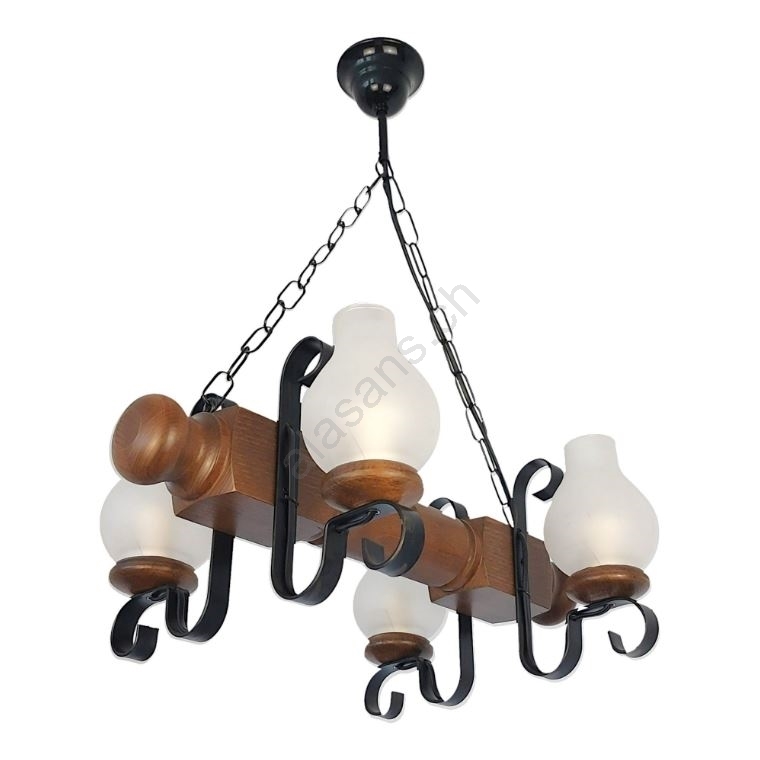 Brilagi - Suspension chaîne RUSTIC 4xE14/40W/230V hêtre/noyer
