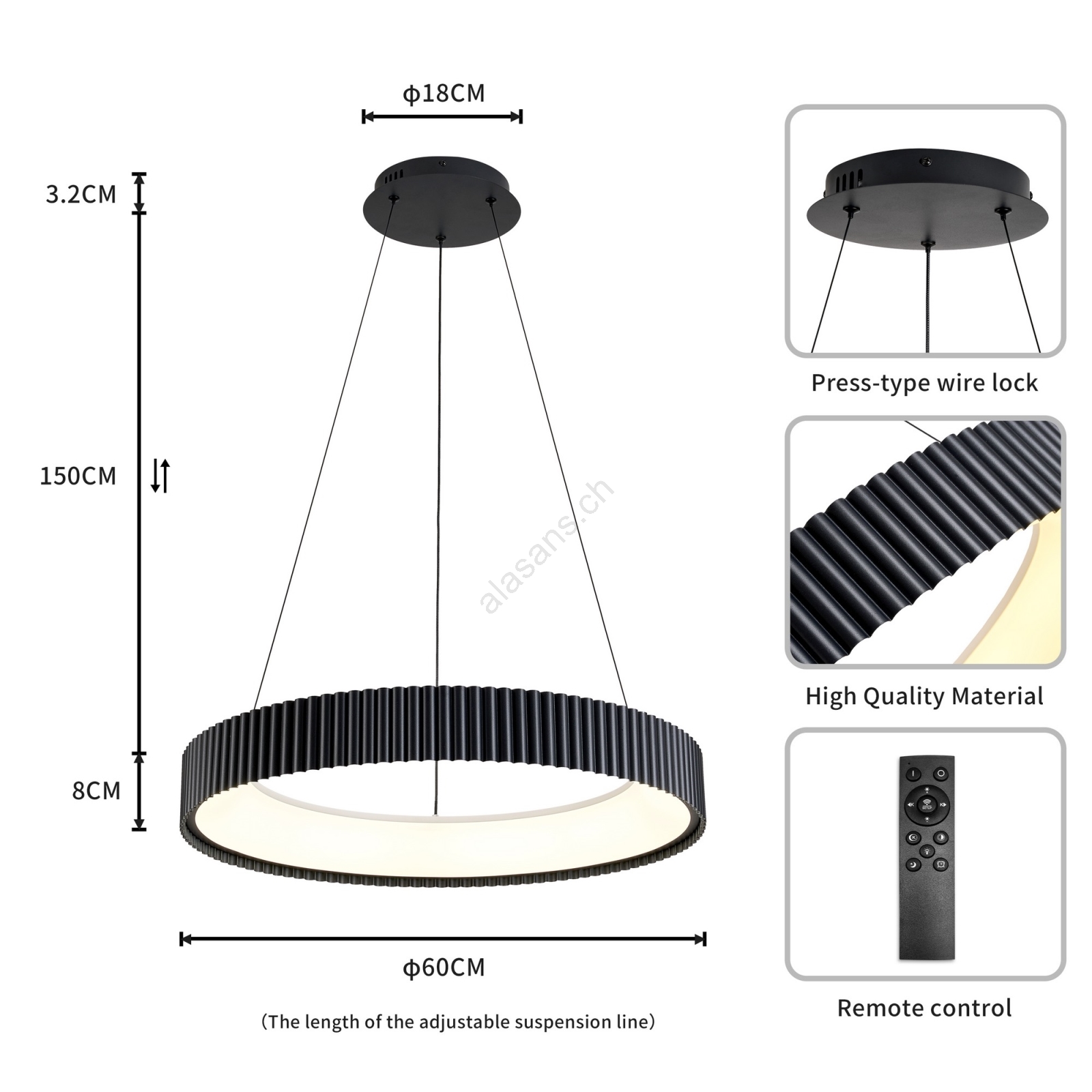 • Brilagi - Suspension LED dimmable sur câble FALCON MODERN LED/54W/230V 3000-6500K Ø 60 cm noire + télécommande