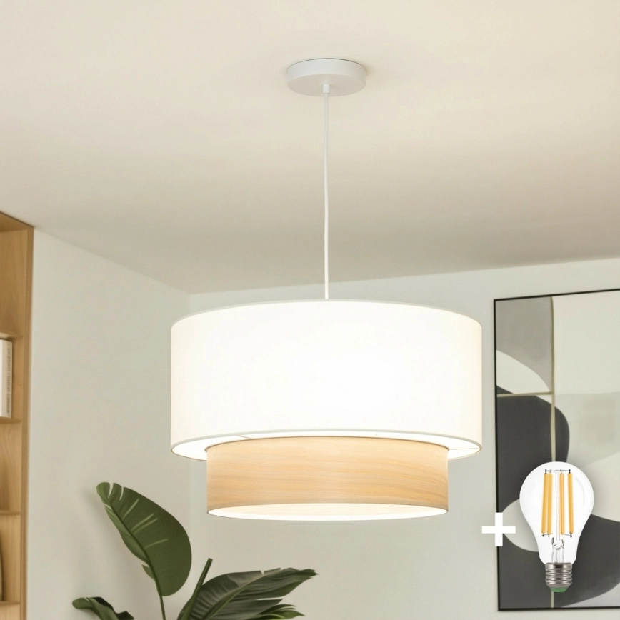 • Brilagi - Suspension LED sur câble CERIA 1xE27/40W/230V Ø 50 cm blanche/beige