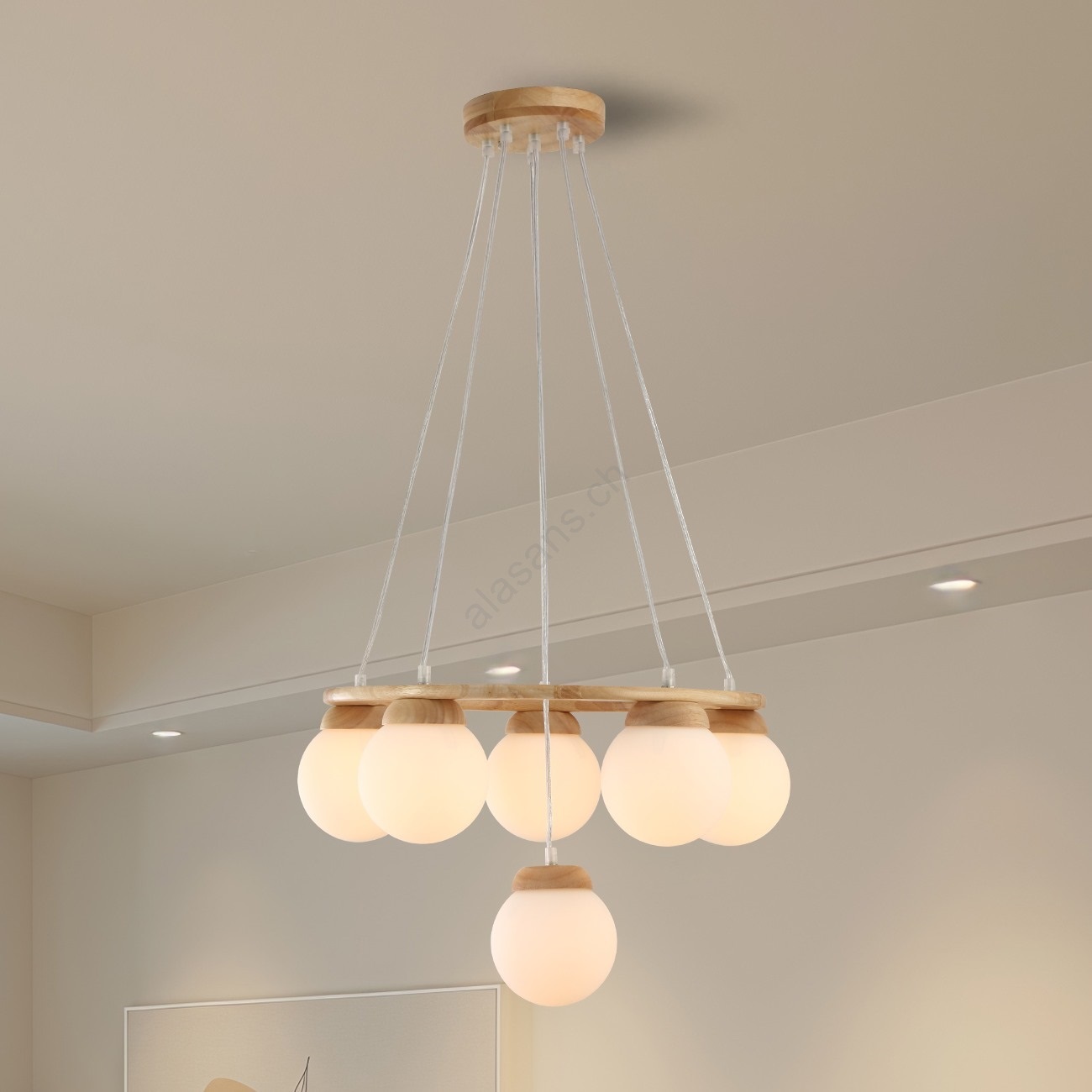 Brilagi - Suspension sur câble VISBY WOOD 6xE27/60W/230V Ø 58 cm en bois