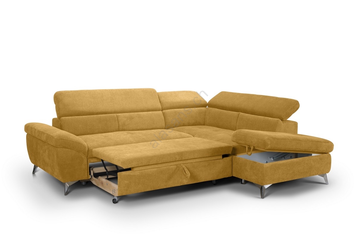 Canapé d'angle convertible en L SALERNO, version droite, jaune