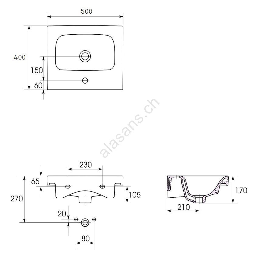 • Lavabo moderne et élégant avec trop-plein.