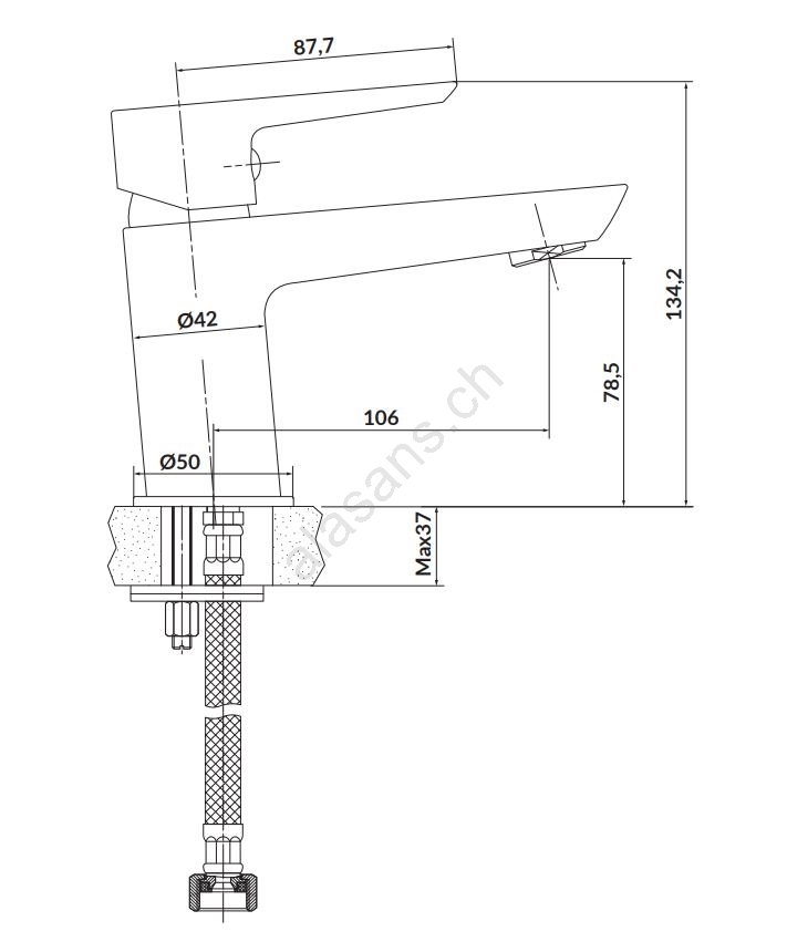 • Le vidage métallique à clipser avec flexibles de raccordement est inclus.