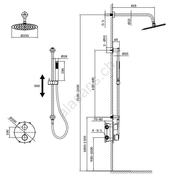 • Cet ensemble de douche avec robinet thermostatique encastré est un ajout élégant à toute salle de bains.