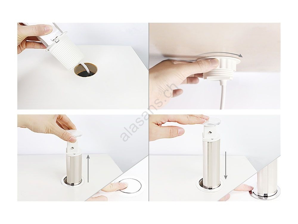 • Colonne d'alimentation escamotable – bloc 3 prises (distributeur) idéal pour plans de travail, bureaux, cuisines et mobilier – tout simplement là où vous avez besoin de prises électriques.