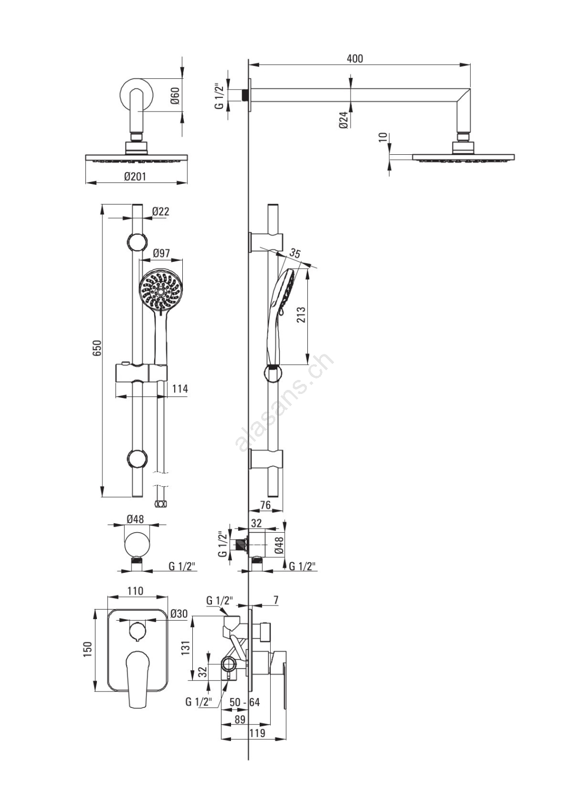 Deante NAC_09GA - Ensemble de douche avec mitigeur encastré ALPINIA, chrome brillant